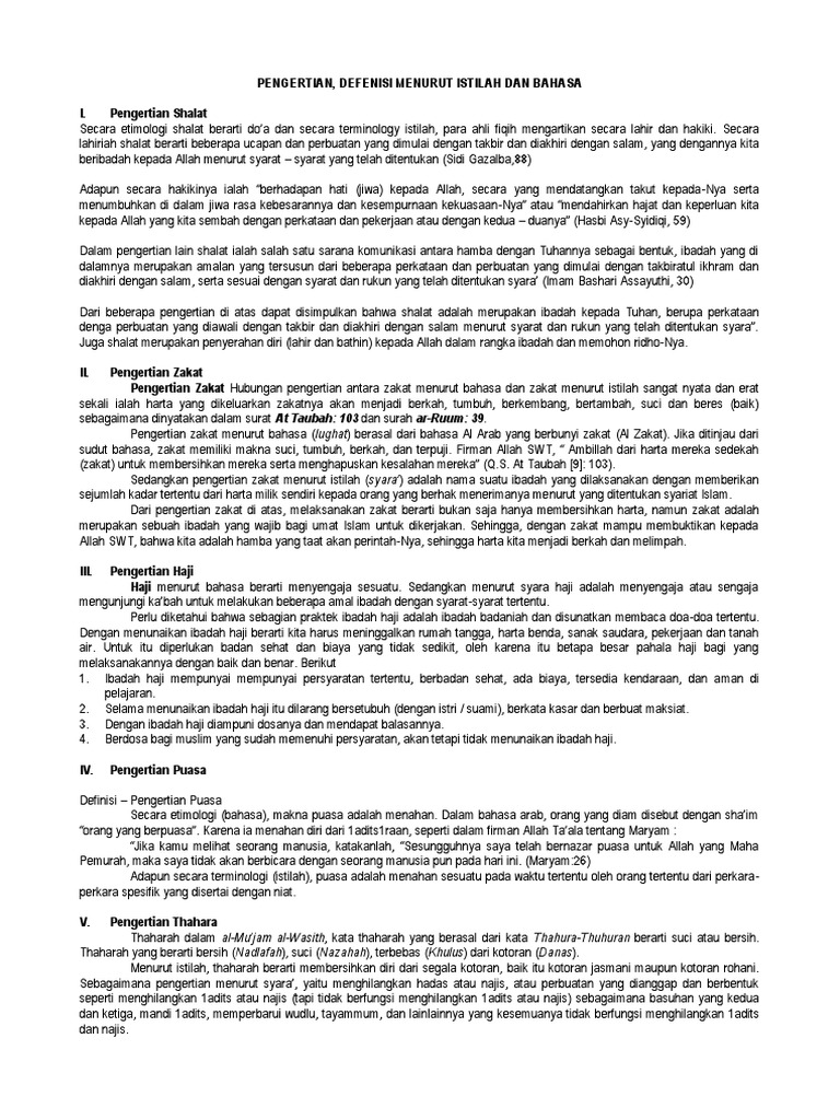 Pengertian Dan Manfaat Shalat Puasa Zakat Haji Dan Thaharah Pdf